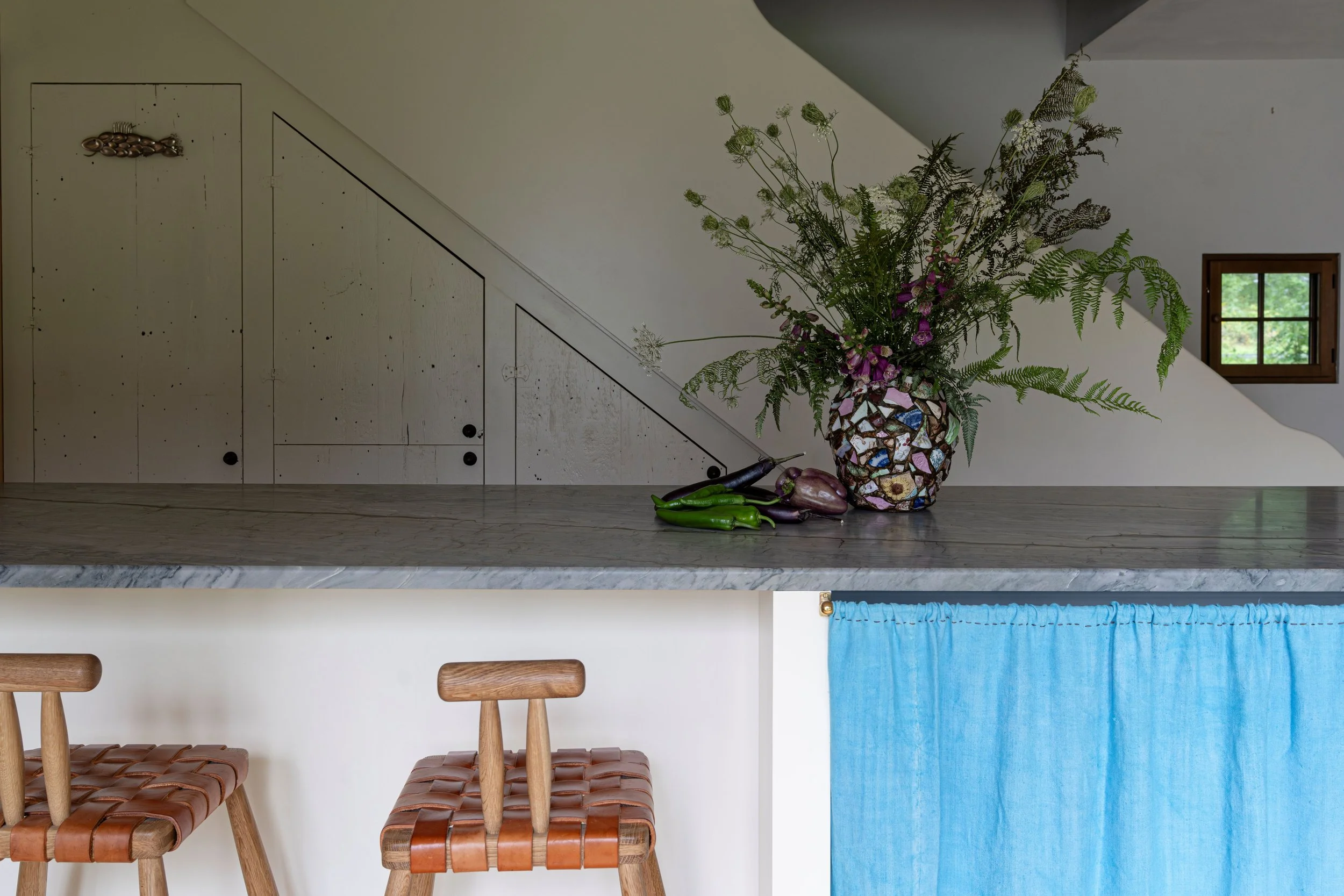Our client, founder of interior design practice Insides Studio, came to us with a clear vision for the project. Together, we worked through space planning, architectural detailing, structural coordination and permitting, turning her sketches and inspirational images into a buildable reality. The completed cedar shingle clad addition and renovation stand in beautiful dialogue with the painted clapboard original Cape. Carefully salvaged materials from the renovated areas of the home lend the new spaces a perfectly aged patina, while Insides Studio’s meticulously sourced materials, fixtures and furnishings create refined yet delightfully comfortable interiors.
